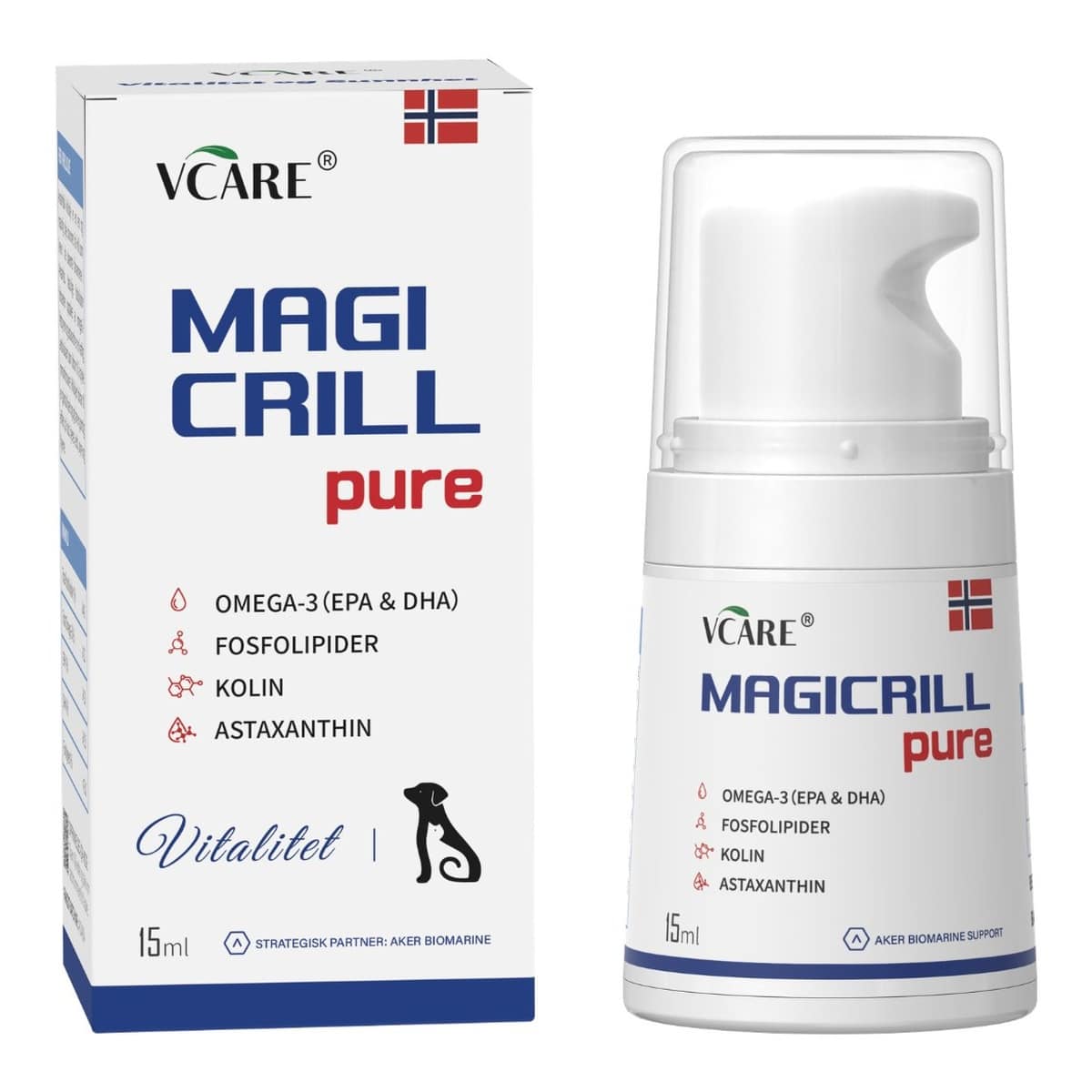 Magicrill Pure is a premium krill oil from Antarctic waters, rich in phospholipid-bound Omega-3 (EPA & DHA), choline and astaxanthin for everyday support in dogs and cats.